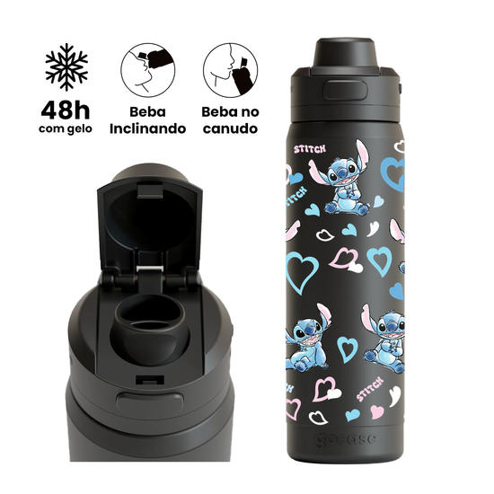 Garrafa Térmica Flip Pro + Ebook - Lilo & Stitch - Stitch Corações