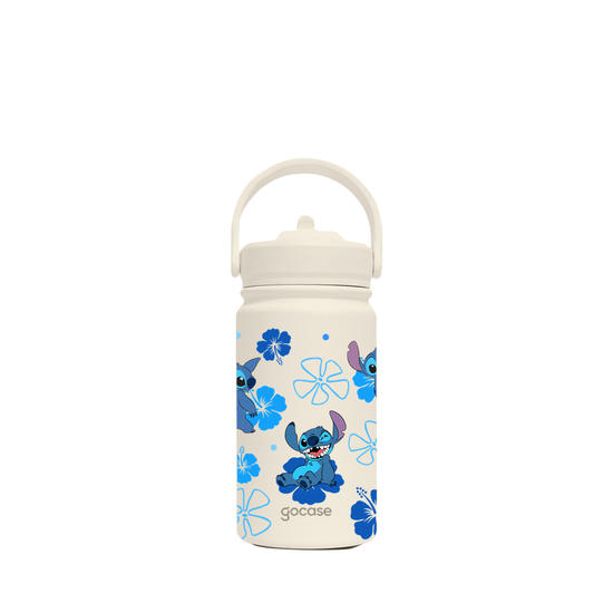 Garrafa Térmica Mini + Ebook - Stitch - Flores Havaianas